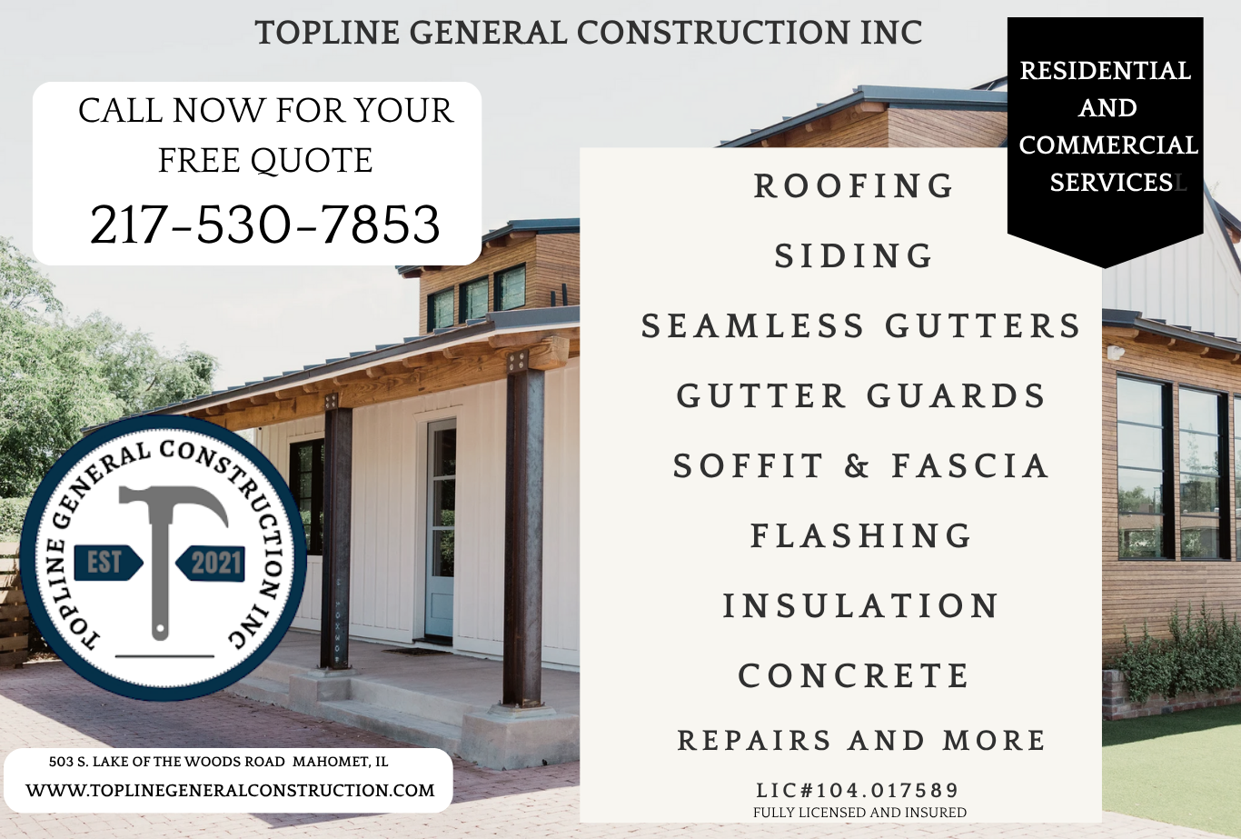 Yes, we can provide emergency roof repairs and/or tarping. When you need roof repair in Mahomet, IL, call Topline General Construction Inc.